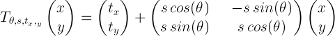 В этом преобразовании мы имеем, что θ — угол поворота, t x и t y — сдвиг по оси x и y соответственно, а s — коэффициент масштабирования. Применяя это преобразование к каждой точке формы, описанной X, мы получаем новую форму, которая является преобразованием исходной формы в соответствии с параметрами, используемыми в T. Учитывая матрицу, как определено выше, следующая функция Python способна применить преобразование к каждой точке формы, представленной матрицей: