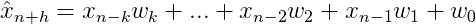 где x n − k и x n − 1 — соответственно самое старое и новейшее наблюдение, которое мы рассматриваем для прогноза. Веса w k , …, w 1 , w 0 выбираются для минимизации