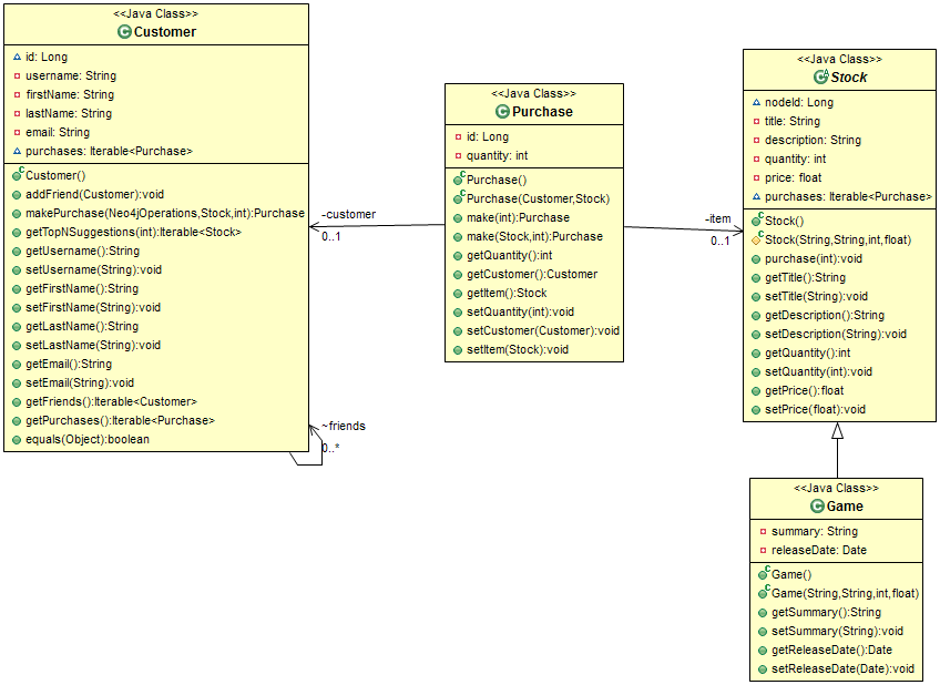 Neo4jOperations . Это один из способов доступа к необходимым функциям сохранения / извлечения, которые нам нужны. Затем мы создаем 2 объекта / отношения Покупка ( Покупка на самом деле является объектом отношения). Также стоит отметить, что вместо использования объекта «template» для сохранения отношений я следовал учебному пособию Neo4j «Хорошие отношения »
