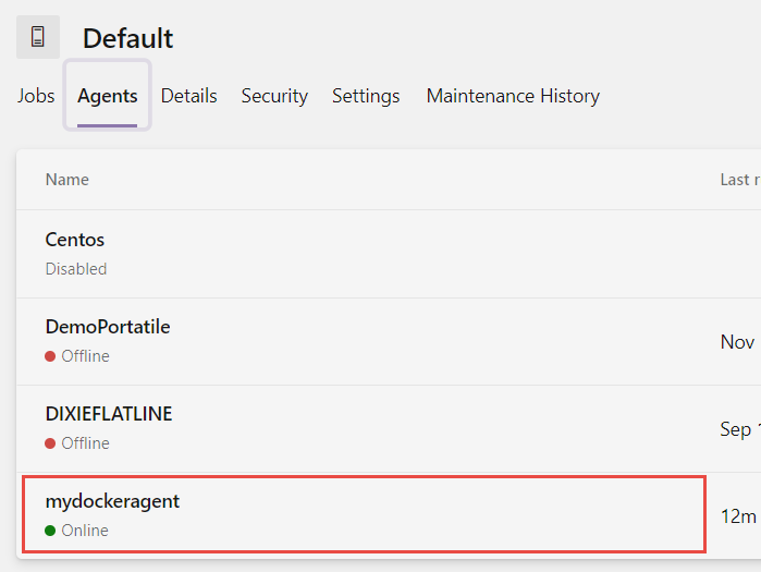 Actually, my agent created with Docker Compose is absolutely equal to all other agents. From the point of view of Azure DevOps, nothing is different, but I've started it with a single line of Docker-Compose command.