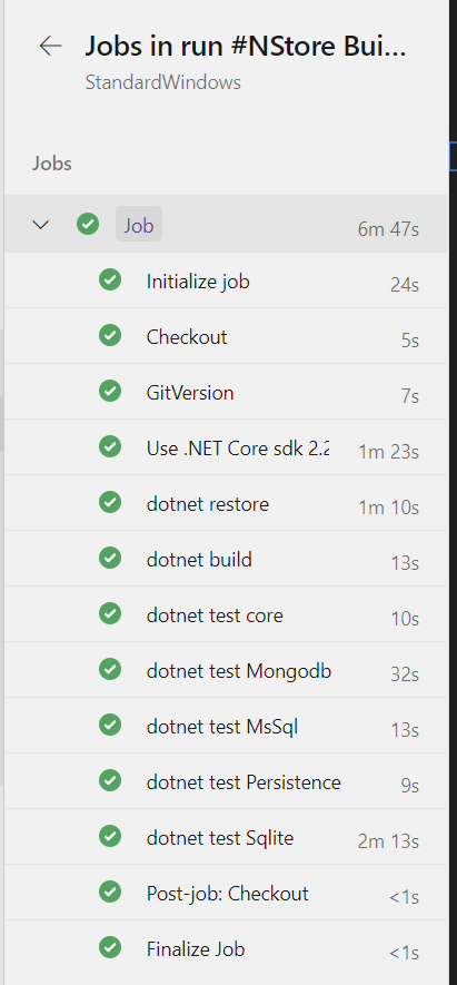 Thanks to Docker Compose, you pay the price of downloading pulling images once. You are paying only once the time needed for any image to become operative (like MsSQL or other databases that need a little bit before being able to satisfy requests). After everything is up and running, your agent is operative and can immediately run your standard builds — no Docker reference inside your YAML build file, no time wasted waiting for your images to become operational.