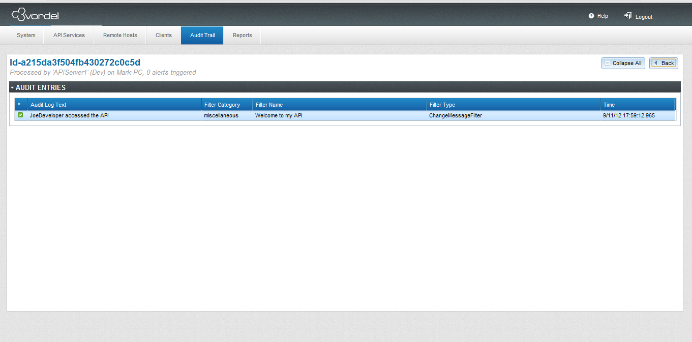 So in summary, there is great flexibility in the Vordel API Server for both the format (e.g. comma-separated) and content (e.g. insert Client IDs) of logged data.