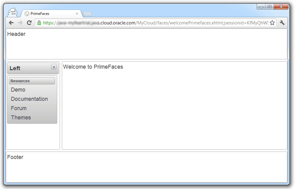 http: // localhost: 7001 / MyCloud / или как называется ваше приложение. Как видите, компоненты Primefaces также работают. Не впечатляющий
