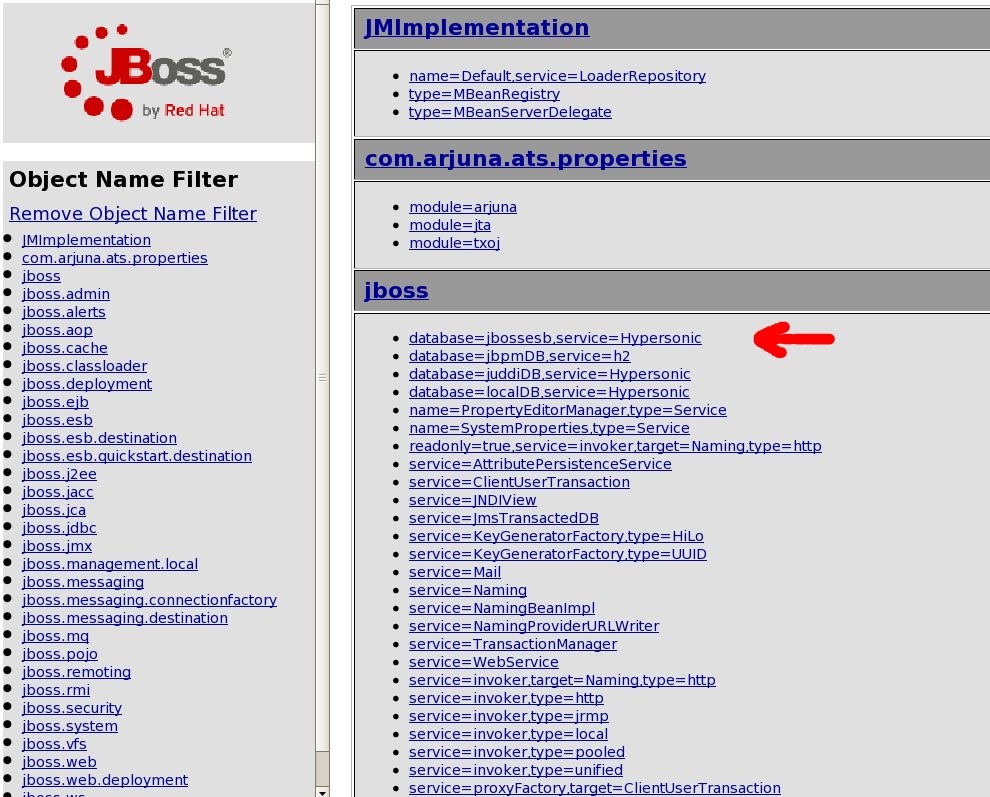 - Строка 12 — интерфейс MBean для запуска Hypersonic в той же виртуальной машине с JBoss — обратите внимание, что имя службы и имя JNDI, как мы будем ссылаться на них позже.