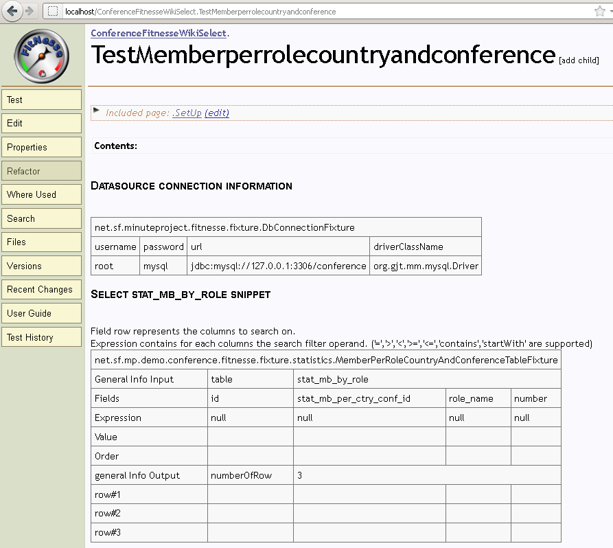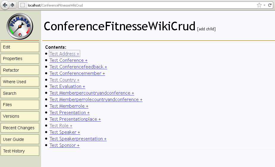 - Весь этот код генерируется в /ConferenceFitnesseWikiSetup/content.txt. Его также можно скопировать с http: // localhost / ConferenceFitnesseWikiSetup