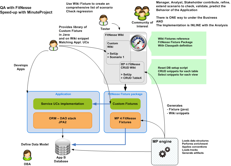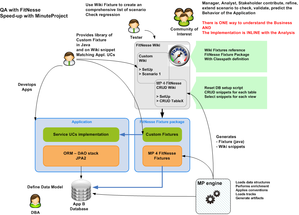 - Механизм работы FitNesse + Minuteproject в Agile разработке