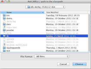 Я добавлю папку lib Derby в путь к классам iReport. Для этого нажмите кнопку «Добавить папку» и просматривайте файловую систему, пока не доберетесь до папки lib внутри установки Apache Derby: