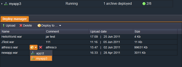 В целях тестирования Jelastic поставляется с примерами приложений HelloWorld.war . Развернуть его так же просто, как выбрать и развернуть в одной из ранее созданных и настроенных сред.
