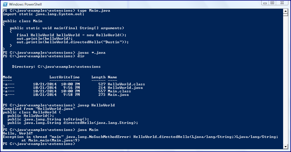 вызывает новая версия . В этом случае я собираюсь оставить вновь скомпилированный HelloWorld.class