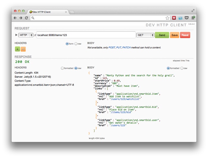 trait RESTRoutes extends ScalatraBase with Injectable with AkkaSupport{ ... /** * Handles get based on items id. This operation doesn't have a specific * media-type since we're doing a simple GET without content. This operation * returns an item of the type application/vnd.smartbid.item+json */ get( '/items/:id' ) { // set the result content type contentType = 'application/vnd.smartbid.item+json' // the future can't access params directly, so extract them first val id = params( 'id' ).toInt; Future { // convert response to json and return as OK itemRepo.get(id) match { case Some(x) => Ok(write(x)); case None => <a href= "https://www.google.com/search?hl=en&q=allinurl%3Anotfound+java.sun.com&btnI=I%27m%20Feeling%20Lucky" >NotFound</a>( 'Item with id ' + id + ' not found' ); } } } /** * Delete the specified item */ delete( '/items/:id' ) { val id = params( 'id' ).toInt; Future { itemRepo.delete(id) match { case Some(x) => NoContent(); case None => <a href= "https://www.google.com/search?hl=en&q=allinurl%3Anotfound+java.sun.com&btnI=I%27m%20Feeling%20Lucky" >NotFound</a>( 'Item with id ' + id + ' not found' ); } } } ... } |