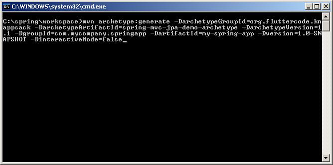 mvn архетип: генерировать -DarchetypeGroupId = org.fluttercode.knappsack -DarchetypeArtifactId = spring-mvc-jpa-demo-archetype -DarchetypeVersion = 1.1 -DgroupId = com.mycompany.springapp -DartifactId = my-spring-app -DsionHD -DinteractiveMode = ложь