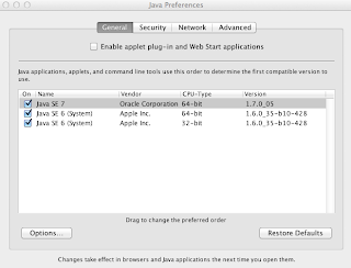Затем мне нужно было просто перетащить Java SE 7 в окне настроек Java на первую позицию в списке.