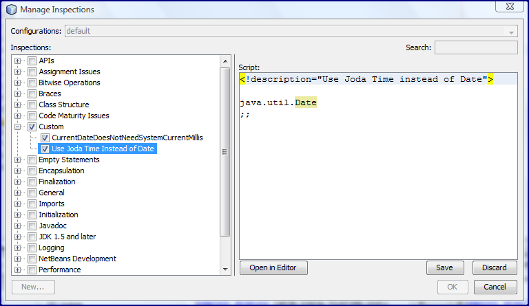 . Интересный и несколько связанный с этим поток StackOverflow спрашивает, можно ли создать настраиваемую подсказку NetBeans, чтобы рекомендовать использовать Joda Time вместо Date