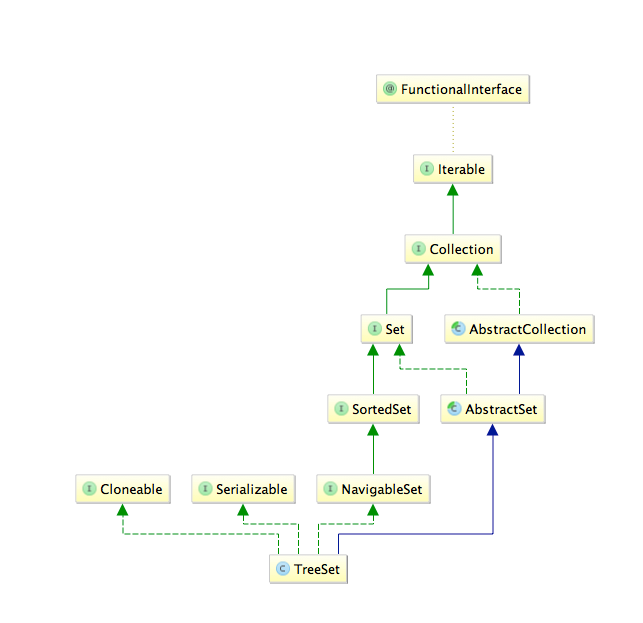 Вот набор фруктов, который мы создали ранее (набор представляет собой TreeSet с «яблоком», «киви», «апельсинами», «грушами», «ананасами»).