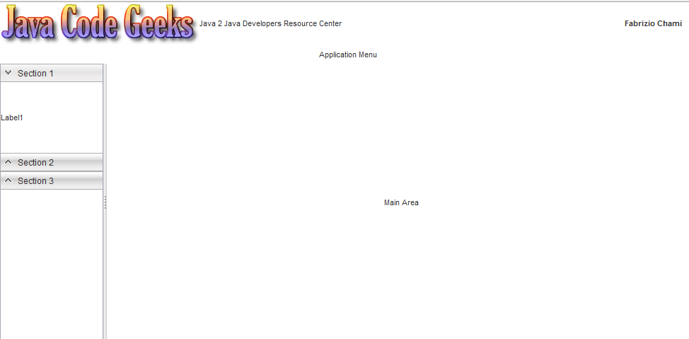 Теперь мы собираемся вернуться к классу «MainArea» и добавить в него три разных панели вкладок. Первый будет содержать произвольные элементы HTML, ко второму будет прикреплено меню, а третий будет содержать пользовательский вертикальный аккордеон. Давайте посмотрим, как это делается: