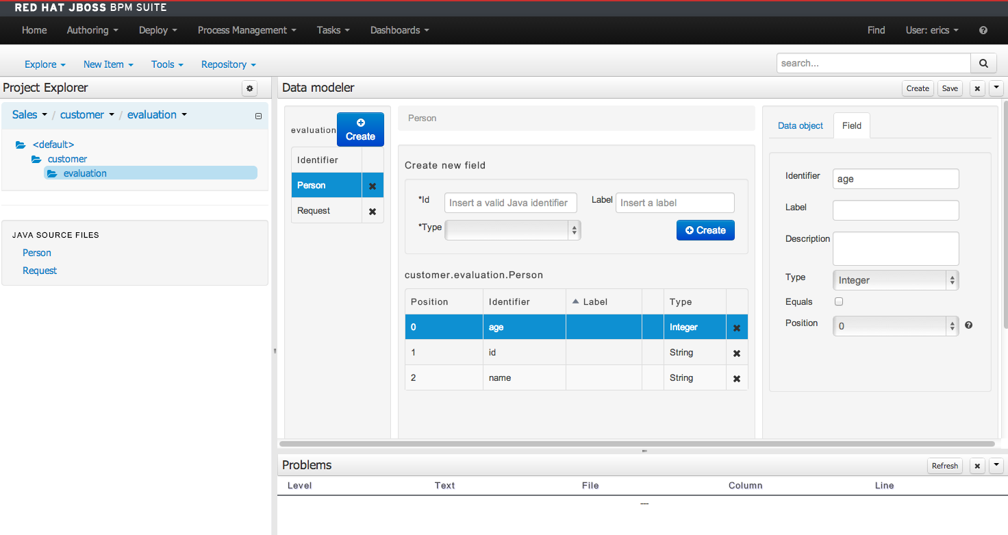 После того, как вы клонировали проект, вы можете добавить свои активы в проект в правильных местах на основе файлов-заполнителей. Например, я создал пустой файл customer.bpmn2 и добавил свой customereval.bpmn2 файл прямо рядом с ним. Затем я удалил старый файл-заполнитель и поместил все это в хранилище. Пользовательский интерфейс продукта автоматически фиксирует изменения, и мой актив процесса появился для использования в конструкторе.