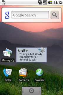 Начиная с версии 1.5, Android SDK включает в себя платформу AppWidget — платформу, которая позволяет разработчикам писать «виджеты», которые люди могут перетаскивать на домашний экран и взаимодействовать с ними. Использование виджетов очень удобно, поскольку позволяет пользователю добавлять свои любимые приложения на домашний экран и взаимодействовать с ними быстро и без необходимости запуска всего приложения. Прежде чем продолжить, предлагаю взглянуть на статью «Представление виджетов домашнего экрана и каркас AppWidget», опубликованную в официальном блоге разработчиков Android . Пример виджета показан на следующем изображении. Это тот, который построен для целей статьи, и он дает обновления «Слово дня». Исходный код для этого можно найти здесь .