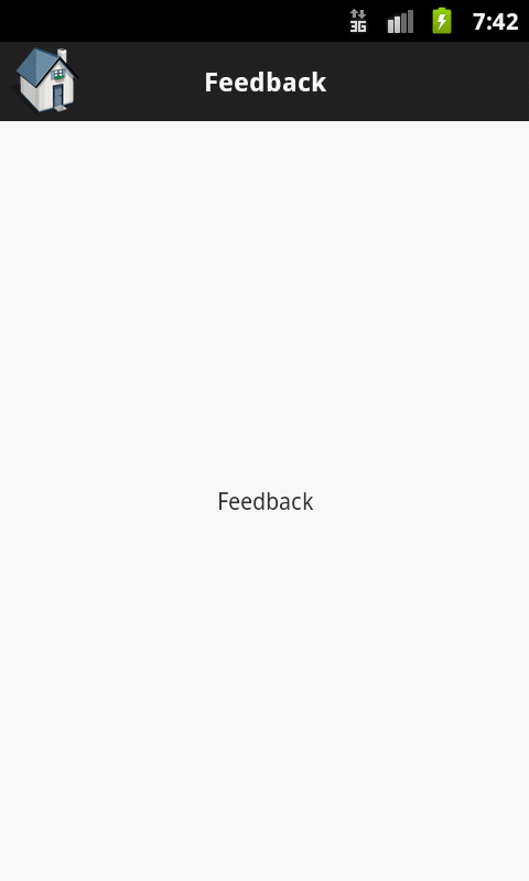В этом упражнении вы найдете использование метода setHeader () для установки заголовка для домашнего действия, да, в этом методе я передал «false» для кнопки «Домой», потому что это уже домашнее действие, но я передал «true» для Кнопка обратной связи, потому что обратная связь нужна, чтобы быть видимой. Другой процесс аналогичен определению обработчиков нажатий кнопок.