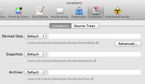 Конечно, в крайнем случае (может быть, у вас больше проблем с настройками XCode?), Вы также можете просто удалить или переименовать файл com.apple.dt.Xcode.plist и запустить XCode заново, даже если я заметил когда я попробовал это, некоторые настройки остались без изменений, т.е. грамм. Исходные деревья. Они, очевидно, хранятся где-то еще …