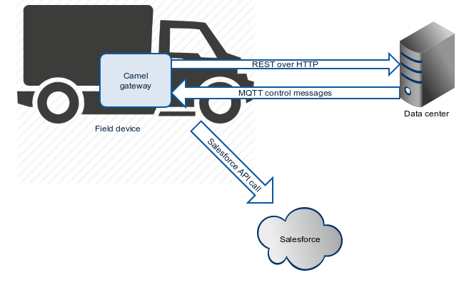 Apache Camel использует компоненты для предоставления соединителей, которые могут использоваться для получения сообщений от различных конечных точек (а также для отправки сообщений на конечные точки). Например, шлюз на базе Apache Camel может использовать компонент Paho MQTT для получения команд управления из центра обработки данных и в то же время использовать компонент Netty для связи с поддерживаемыми службами REST.