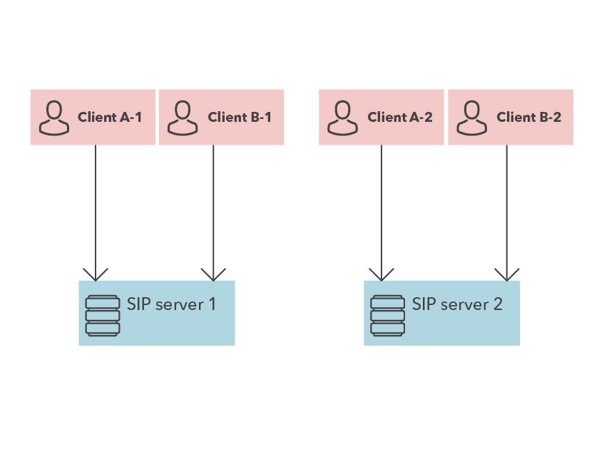 Если ваше приложение SaaS для бизнеса, то весьма вероятно, что клиентам разных компаний не нужно звонить друг другу, используя правильно выбранную хэш-функцию, и мы можем распределить многих наших клиентов по разным SIP-серверам.
