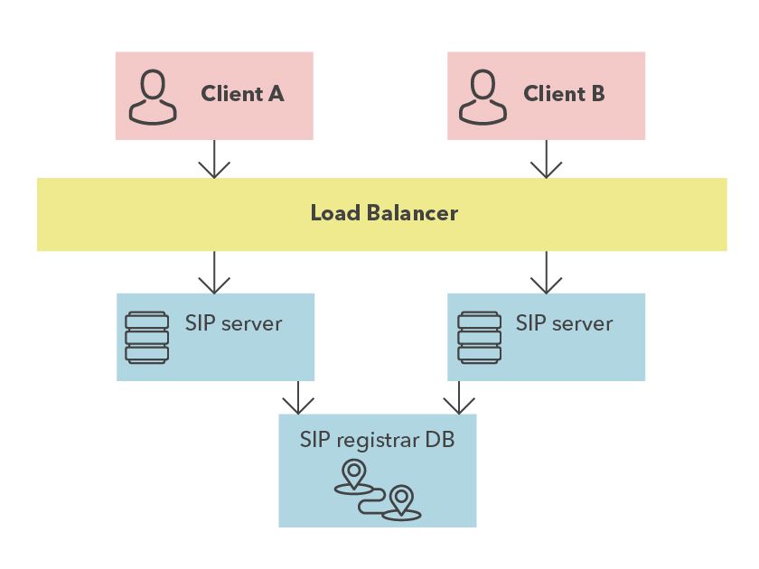 - Ошибка SIP. По умолчанию SIP использует UDP, который, в отличие от TCP, не устанавливает постоянное соединение. Но клиент перерегистрируется примерно каждую минуту (можно настроить). Новый сервер может отвечать на каждый пакет от клиента. Единственное ограничение заключается в том, что IP-адрес ответного пакета не должен изменяться, и нам нужно где-то хранить состояние вызовов пользователя (если они существуют в данный момент), чтобы любой сервер мог работать с этими данными.