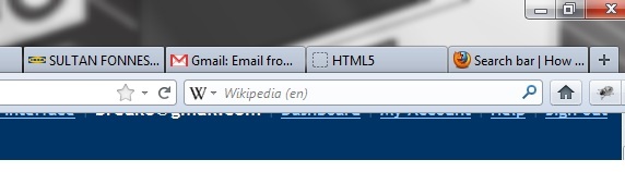 панель поиска Firefox, Это текстовая строка в верхнем правом углу окна Firefox, которую можно использовать для поиска в популярных поисковых системах без непосредственного доступа к ним пользователя. Ряд различных поисковых систем могут быть выбраны. Во всех случаях для движка есть значок, который выступает в качестве ярлыка для поисковой системы. Кроме того, в текстовом поле поиска рядом с меткой значка есть текст-заполнитель. Это объясняет, что обозначает значок метки. Например, для Википедии мы видим значок Wikipedia, а затем текст-заполнитель: