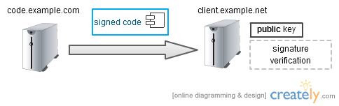 - Клиент загружает новый код и проверяет его перед выполнением (не загружайте открытый ключ снова! — он может быть подделан)