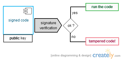 но подписан другим закрытым ключом — его можно обнаружить (потому что открытый и закрытый ключи связаны!). В результате, если у злоумышленника не будет закрытого ключа производителя, он не сможет подделать код, поскольку он не пройдет проверку подписи.